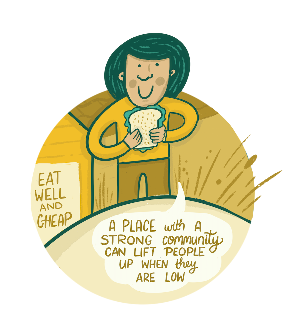 This image was developed based on discussions with members of the community about what wellbeing means to them, and what would support their wellbeing.